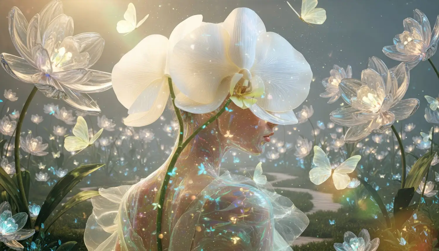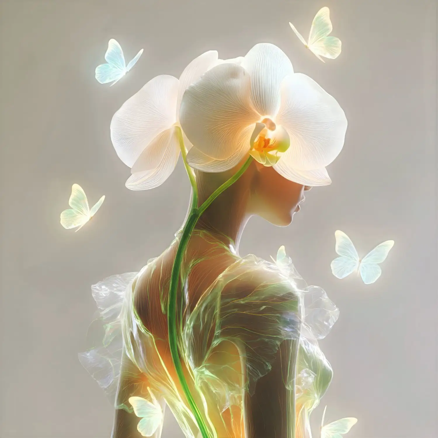 The panther moves calmly through shadow, symbolizing inner vision, intuition, and the ability to remain present even when the path is unclear. The blue butterflies introduce points of light — moments of insight that appear precisely when external vision is limited.
